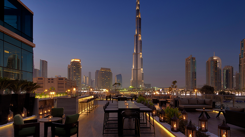 This luxury hotel brings European elegance to Downtown Dubai. Relax on the rooftop pool with spectacular Burj Khalifa views in Dubai across the skyline.